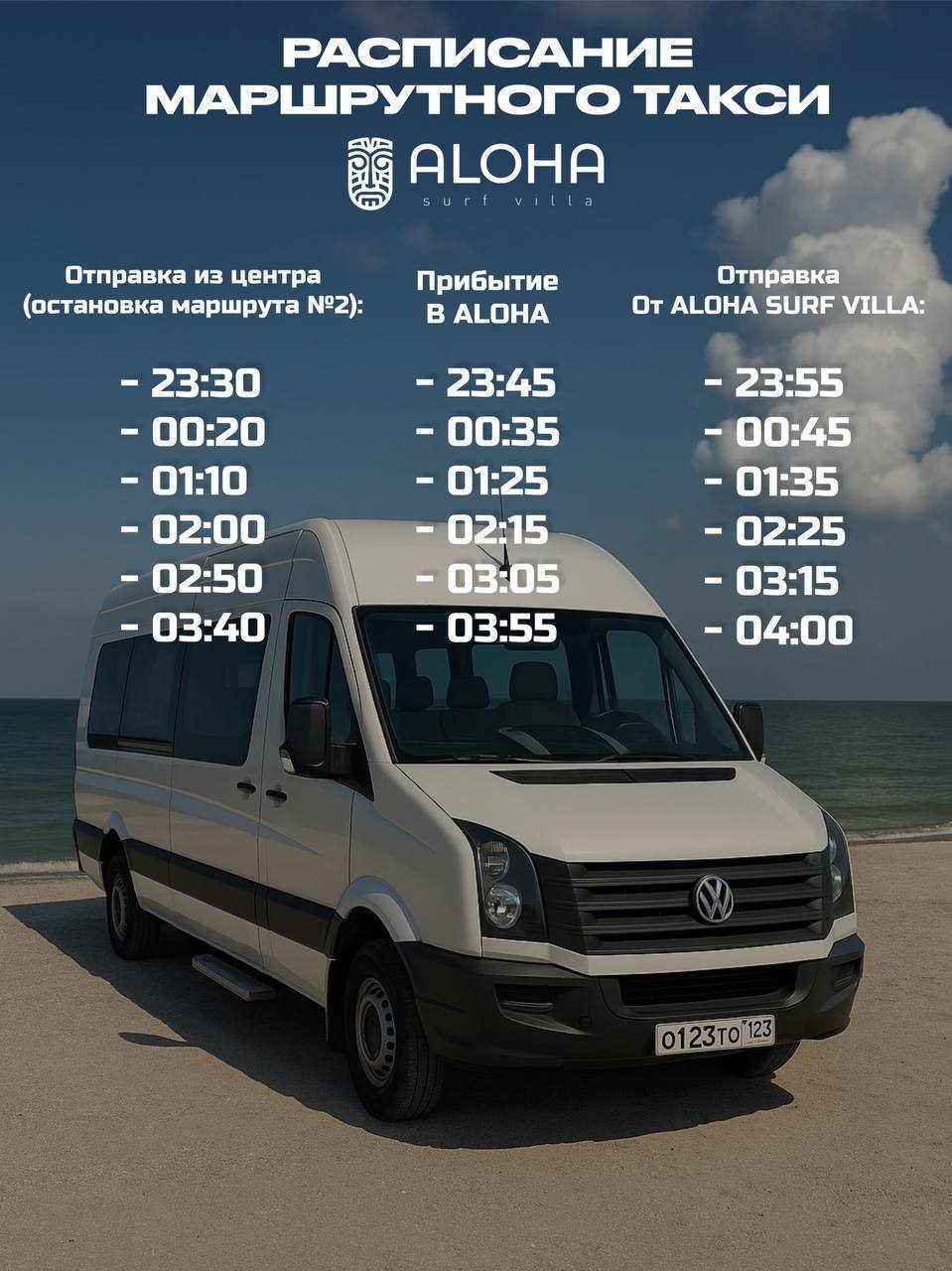 БЕСПЛАТНЫЙ ночной автобус, который доставит вас прямо к дверям ALOHA SURF VILLA.